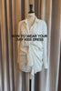Cut from white viscose blended with silk, it has a relaxed silhouette with a plunging neckline draping across the body, and an asymmetric hem.